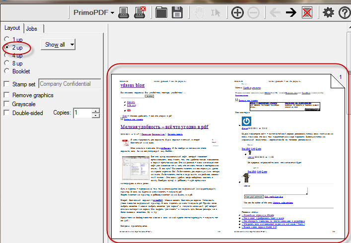 Например, печатаем две страницы на листе: