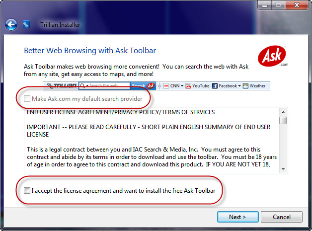 А-то установит какой-то тулбар лишний.